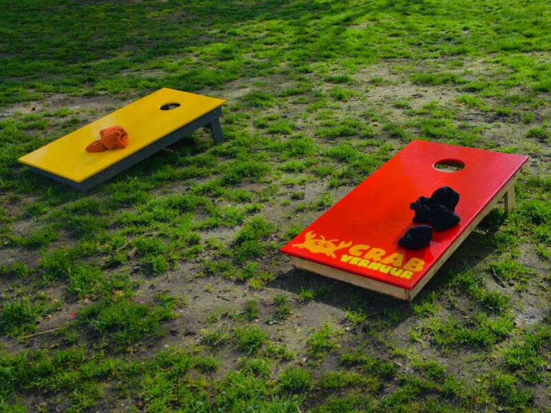 - Algemeen: Cornhole is een populair spel waarbij spelers om de beurt zakjes proberen te gooien in een verhoogd bord met een gat. Het doel is om je zakjes in het gat te krijgen (waardoor je 3 punten verdient) of op het bord zelf te laten landen (waardoor je 1 punt krijgt). Het eerste team of de speler die een vooraf bepaald aantal punten haalt (meestal 21), wint het spel. De gooiafstand tussen de spelers is 8 meter voor volwassenen. Voor kinderen kan de afstand korter zijn, bijvoorbeeld 6 meter.